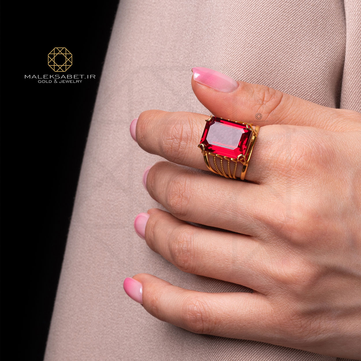 • انگشتر طلا نگین قرمز بزرگ کد 2842